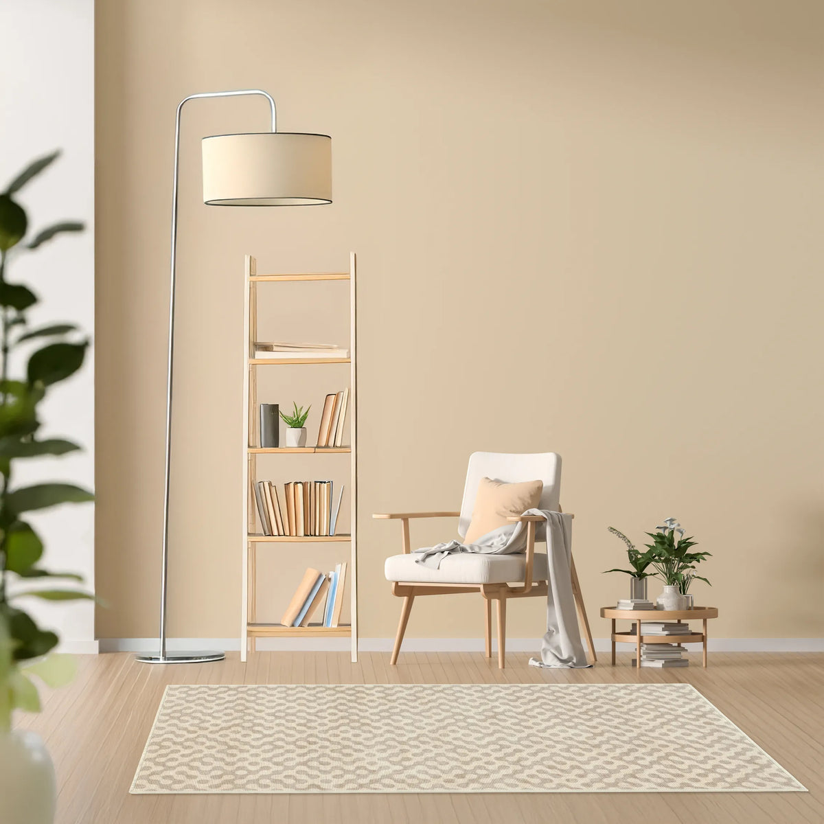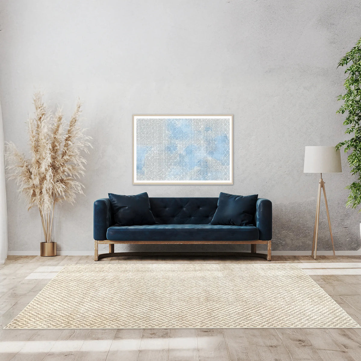 Tappeto Haral 160×230 cm in pelo taftato in living luminoso, arredo moderno e colori neutri.