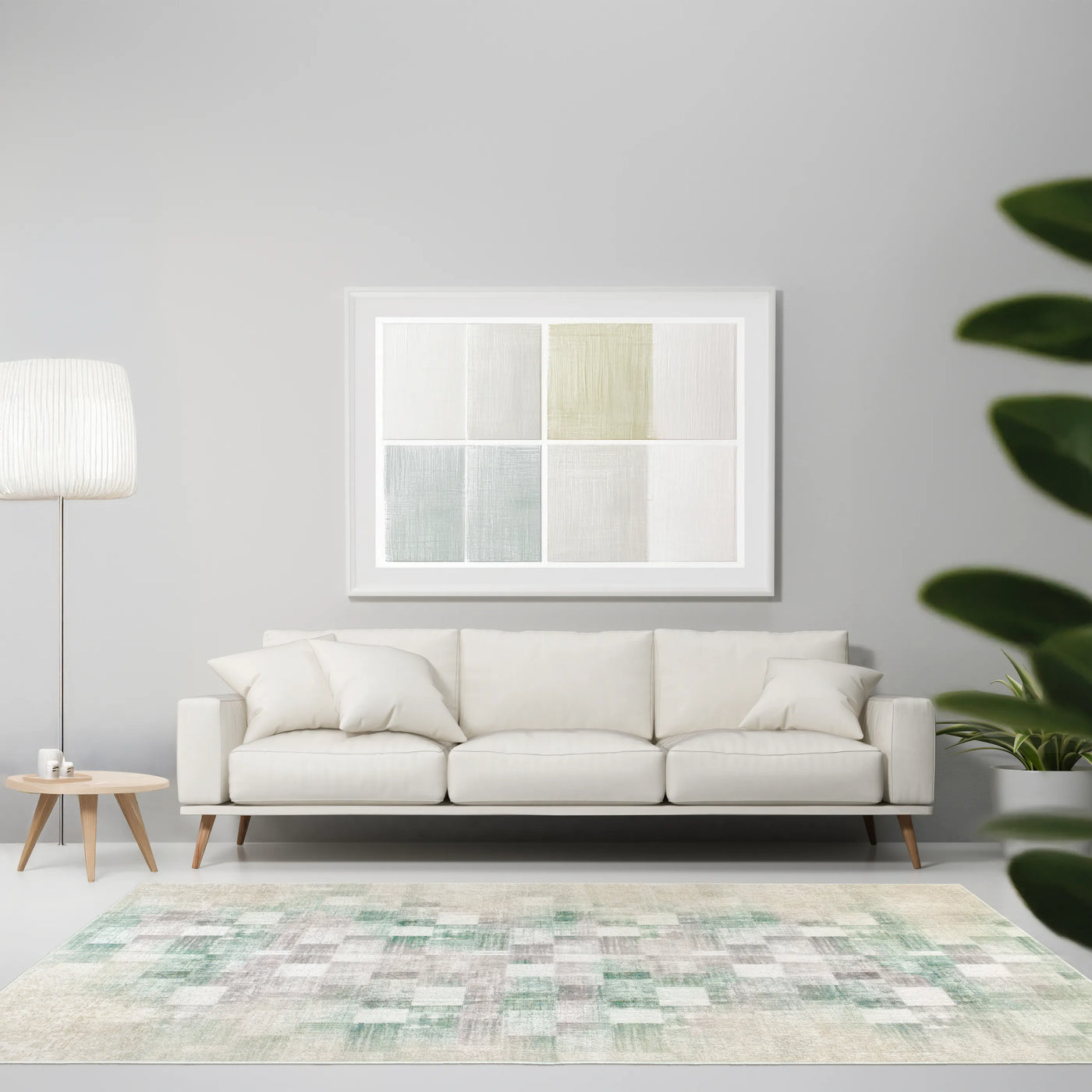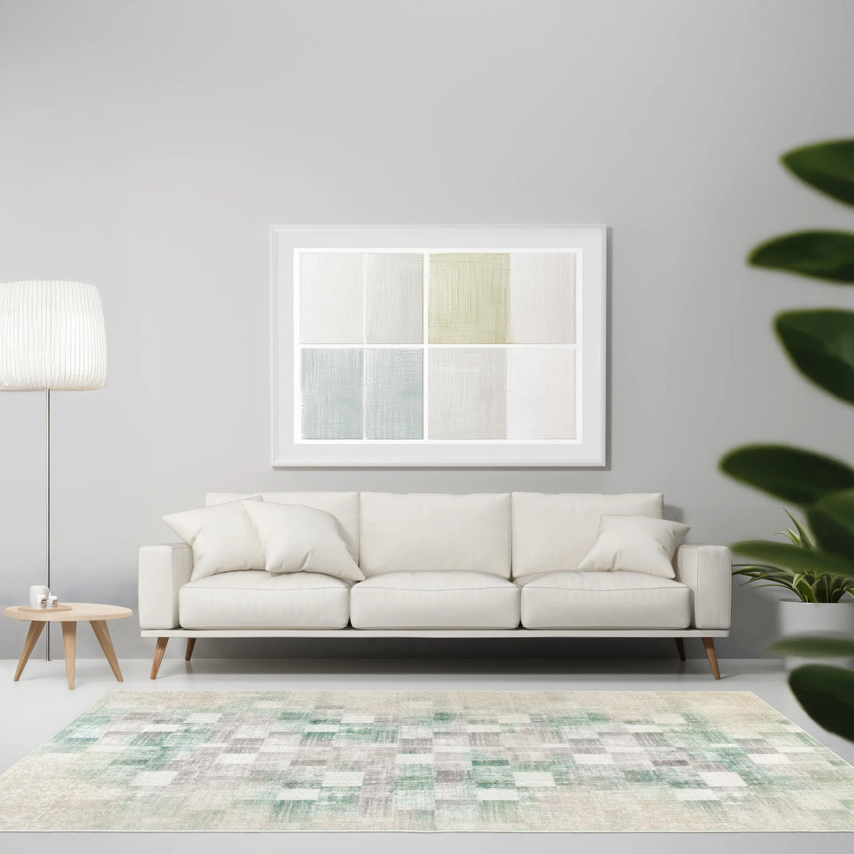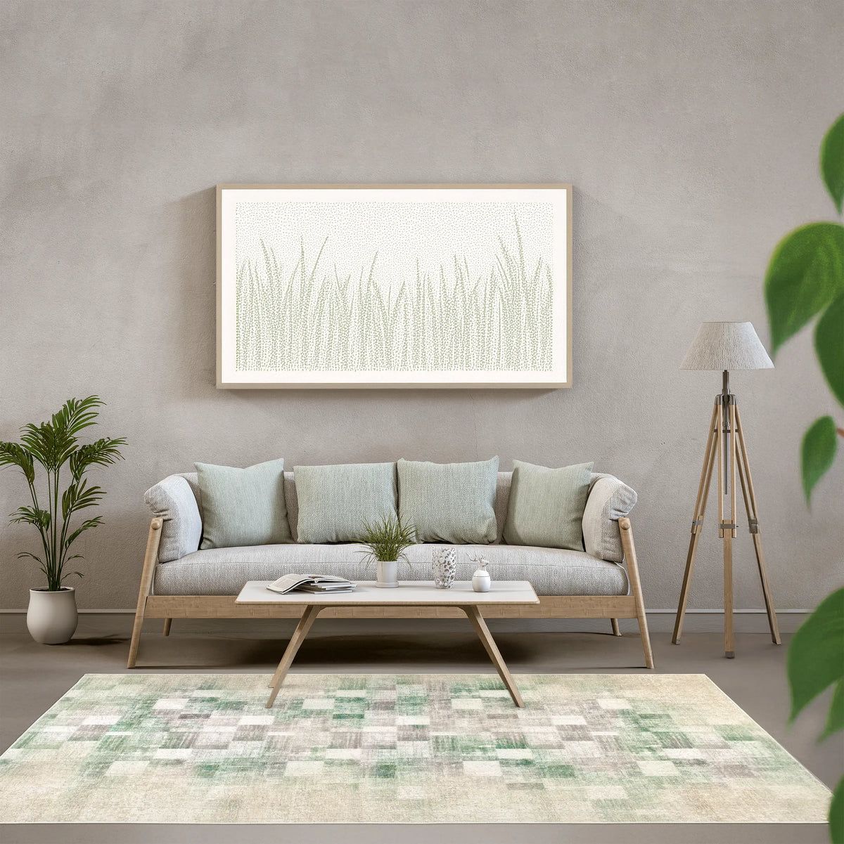 Tappeto Martin LtGreen bouclé 3D 130×190 cm in area relax, toni salvia e neutri.